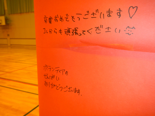 花道に建てられている門には在校生から卒業生にむけたメッセージが書かれています。